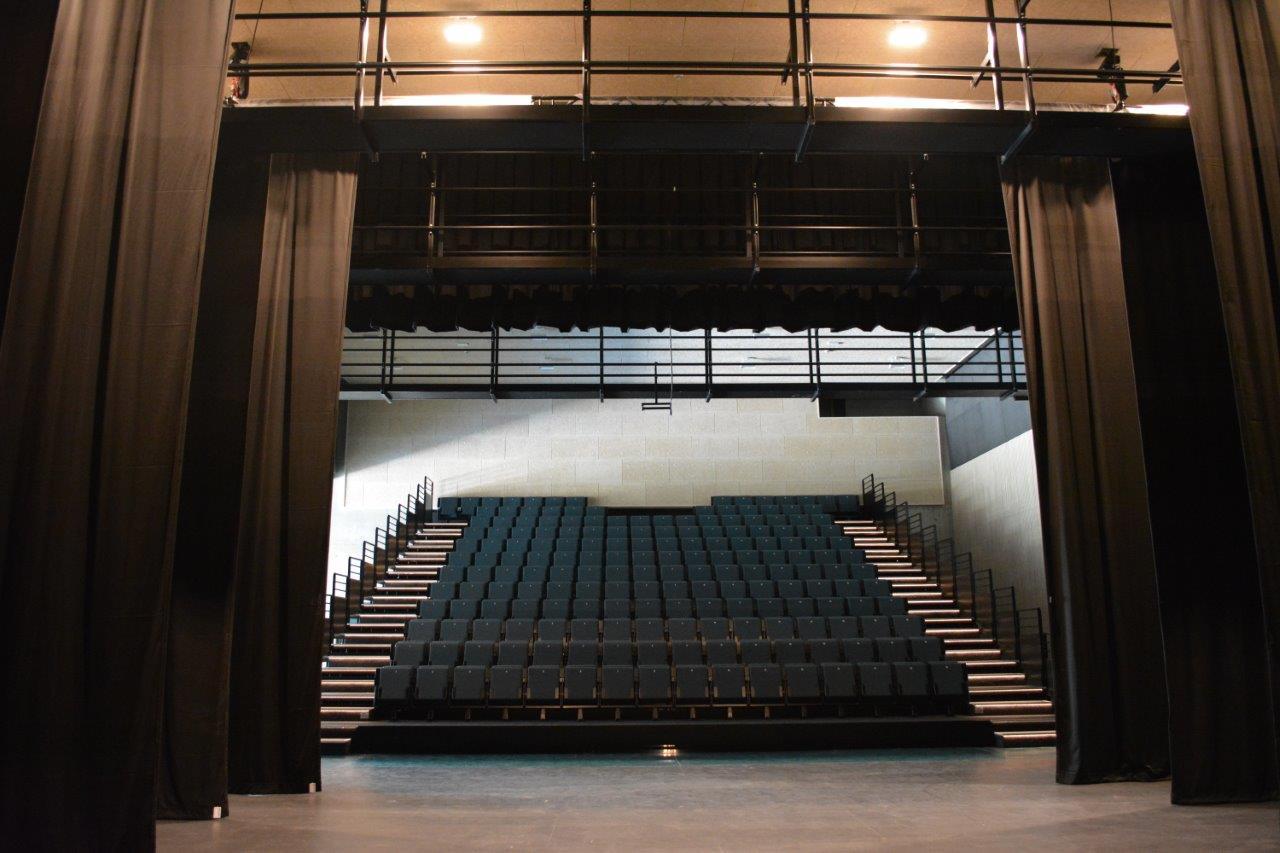 De polyvalente zaal is uitgerust met een theatervloer en uitschuifbare tribune voor maximum 200 zitplaatsen (313 m², backstage en speelvloer 230 m²).