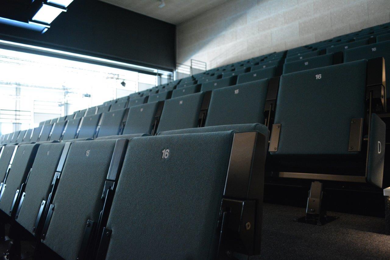 Uitschuifbare tribune voor 186 personen met losse zitrij voor 15 personen (totaal 201 zitplaatsen)